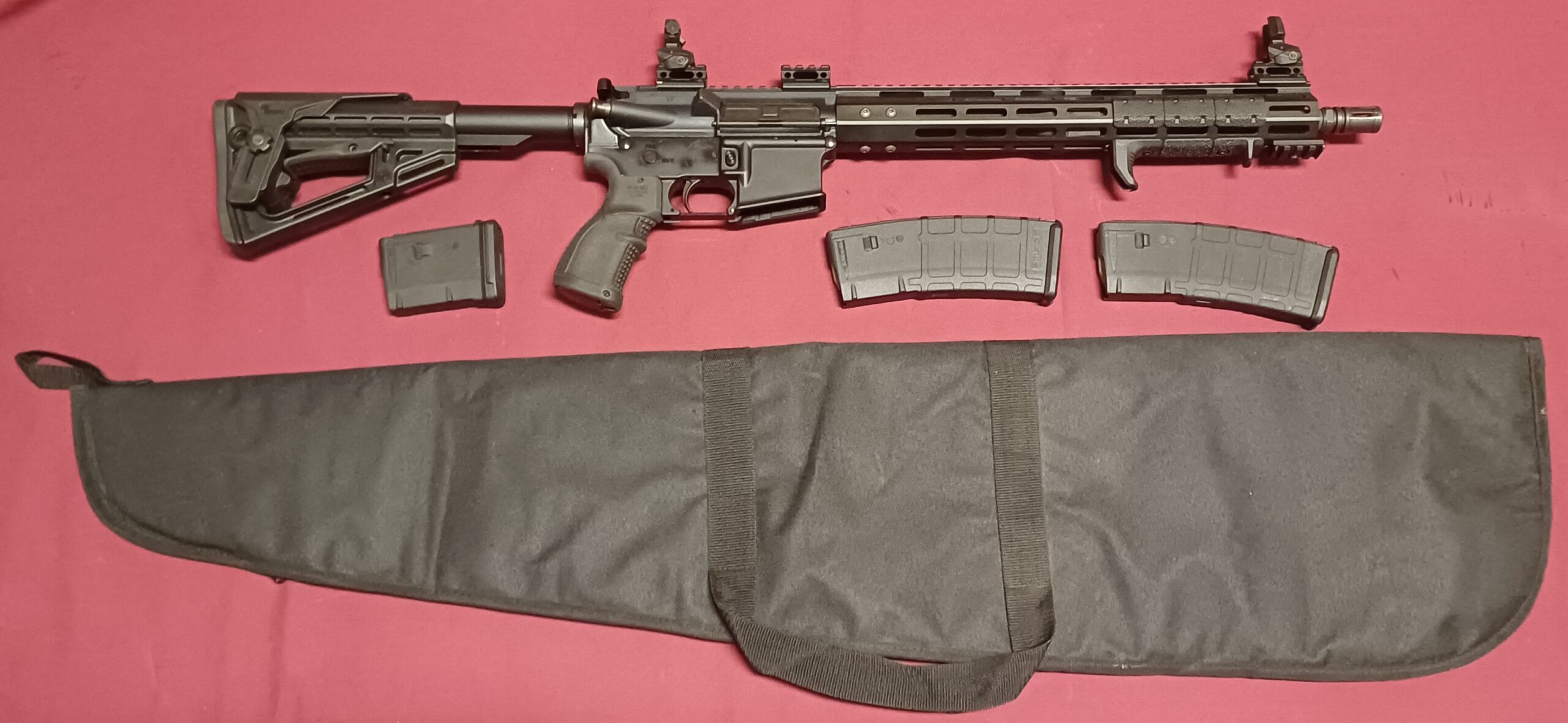 FedArm AR-15 kb spwt., kal. 223 Rem/5,56 NATO, lufa 16”, broń używana w bardzo dobrym stanie, sprzedaż komisowa bez gwarancji, w zestawie: trzy magazynki, pokrowiec, przyrządy mechaniczne, dużo modyfikacji: lepsza kolba, chwyt itp., przebieg ok. 500 sztuk amunicji, FedArm USA 2019. Cena 3000 PLN NIEDOSTĘPNY